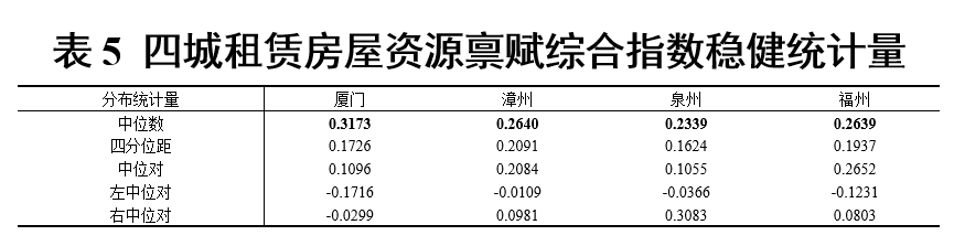 表5 四城租赁房屋资源禀赋综合指数稳健统计量