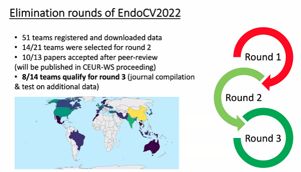 本次赛事吸引了来自世界各地的众多高校和研究机构参与,包括德国癌症研究中心(DKFZ)、海康威视(Hikvision)、iMED、浙江大学、国立清华大学、印度理工学院马德拉斯(IIT-Madras)等。赛事由牛津大学(University of Oxford,UK),阿拉伯科技学院(Arab Academy for Science and Technology)和IEEE国际生物医学成像研讨会(IEEE International Symposium on Biomedical Imaging,ISBI 2022)联合主办。该项系列赛事自2019年开始举办,今年是第四届,包含息肉分割、息肉检测、伪影分割、伪影检测四个赛道,其中息肉分割吸引最多队伍参加。