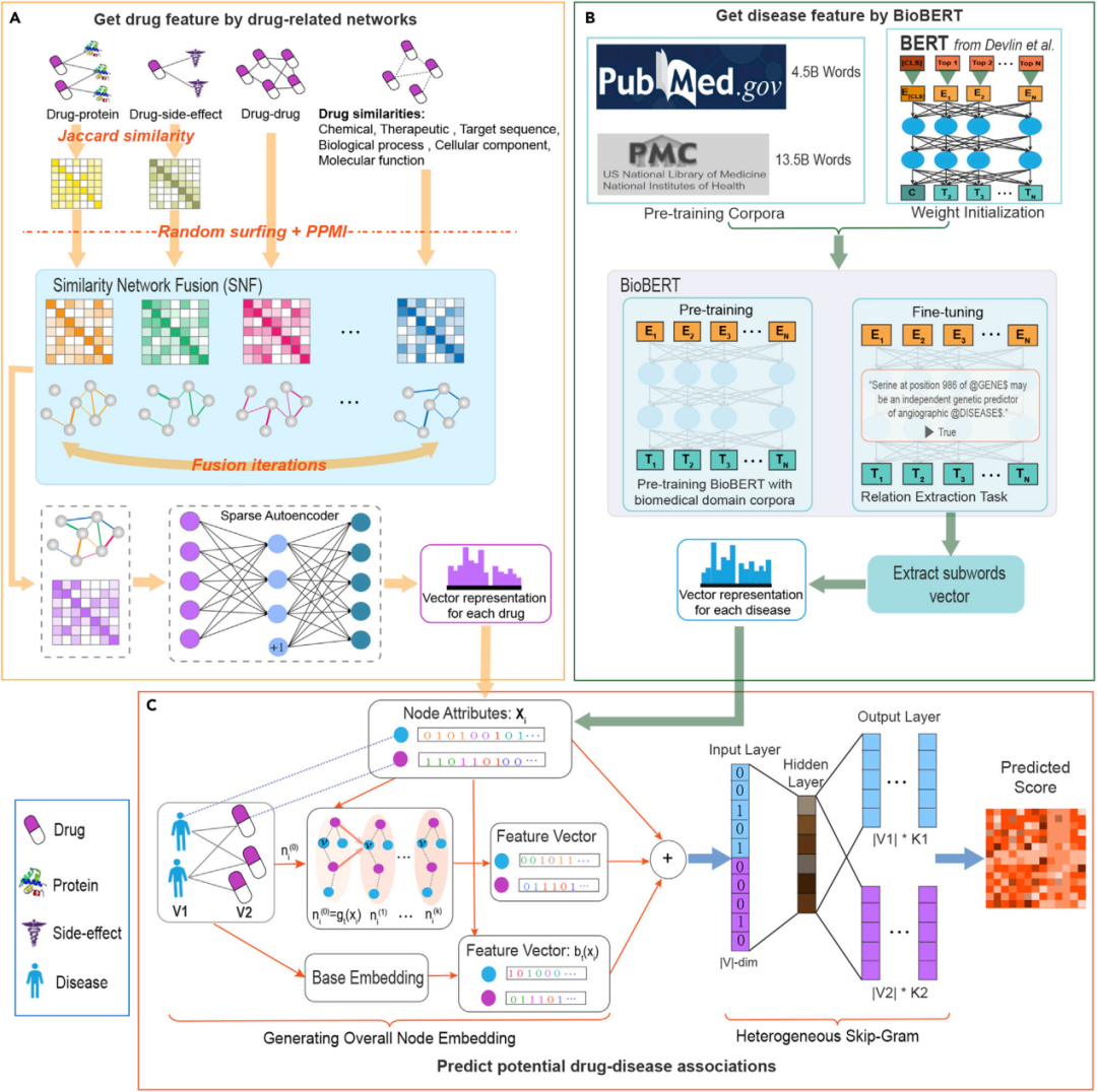 药物重定位的目的是通过研究已批准的药物化合物,扩大药物现有适应症或发现新的靶点,从而减少药物开发的时间、成本和风险。论文提出了一种基于异构网络和文本挖掘的药物重定位方法(HeTDR),该方法基于图神经网络和bioBERT模型,首次结合了来自多个网络的药物特征和来自生物医学语料库的疾病特征去预测药物与疾病的相关性。实验证明,HeTDR的性能优于最先进的药物重定位模型。通过对五种疾病的案例分析,也证明了该模型能够发现疾病潜在的候选药物。同时该方法为多种信息融合提供了潜在的解决方案,并显示出准确的性能,可为今后药物重定位的加速发展提供新的思路,并可为临床生物学家提供计算机辅助指导。