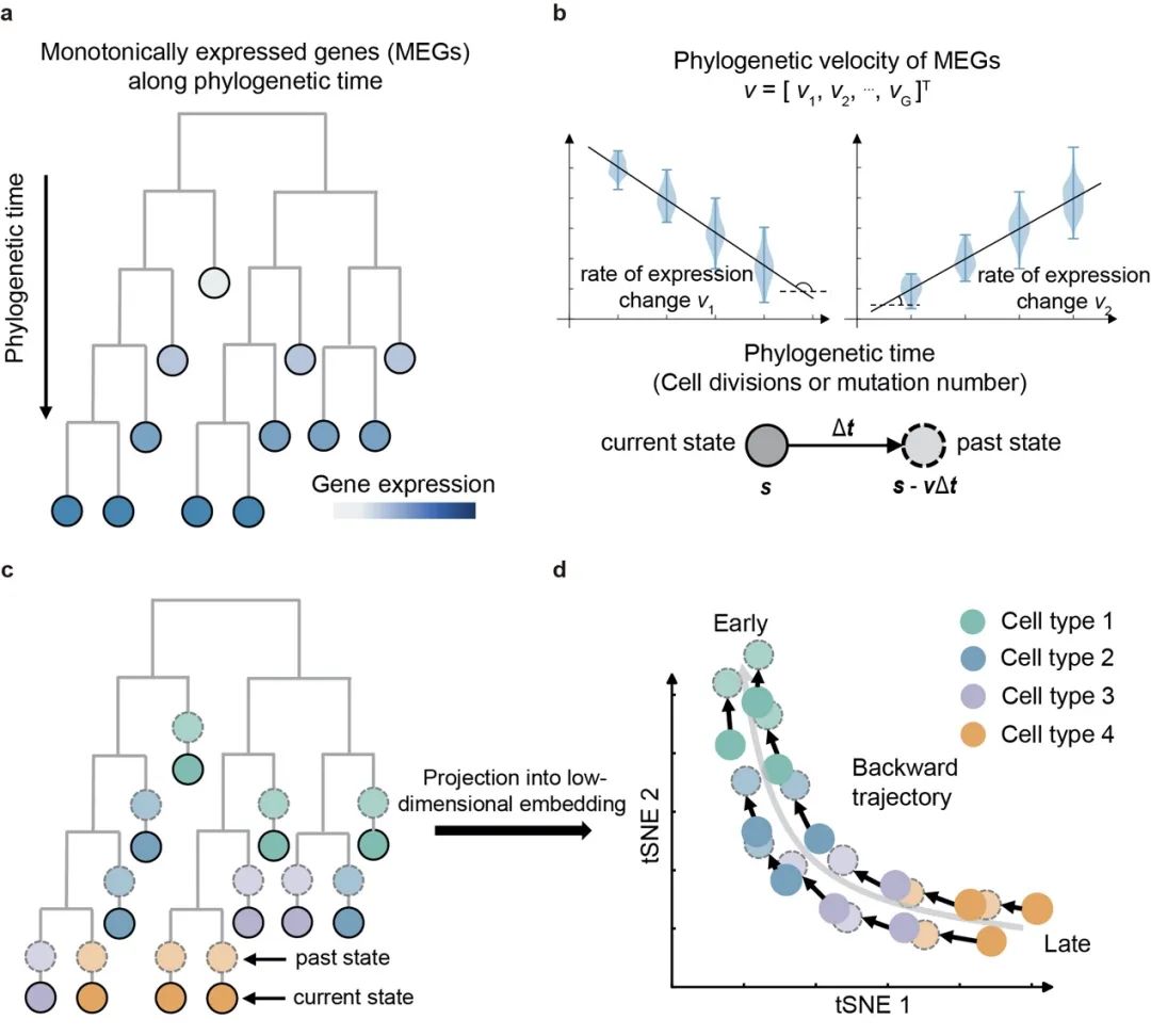 2023年7月31日,中国科学院深圳先进技术研究院合成生物学研究所胡政课题组与厦门大学数学科学学院周达课题组合作,在Nature Biotechnology发表了题为 PhyloVelo enhances transcriptomic velocity field mapping using monotonically expressed genes 的研究论文,提出一项新颖的推断单细胞分化轨迹的算法框架,命名为PhyloVelo。该方法通过联合单细胞转录组数据和谱系示踪数据,鉴定表达量随细胞分裂而呈单调递增或递减的基因,即单调表达基因,并利用分子演化方法估计单调基因的RNA速度,构建单细胞RNA速度场,从而实现对细胞分化轨迹的高精准预测。