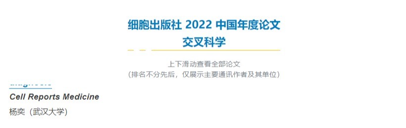 在2022年,以中国机构为第一完成单位、发表在细胞出版社旗下研究型期刊上的研究性论文数量达到了1932 篇。经期刊编辑提名、第三方专家委员会的独立评审,并综合论文下载量、引用量和领域内突破性等权衡标准,细胞出版社评选出了生命科学领域、物质科学领域、医学领域、交叉学科领域和可持续发展领域“细胞出版社 2022 中国年度论文”共 40 篇。