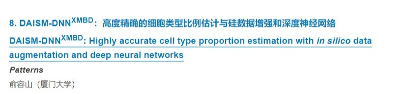 近日,“细胞出版社2022中国年度论文”评选结果揭晓,信息学院、健康医疗大数据国家研究院俞容山教授团队论文“DAISM-DNNXMBD: Highly accurate cell type proportion estimation with in silico data augmentation and deep neural networks”(发表于Patterns)入选交叉科学领域年度论文。