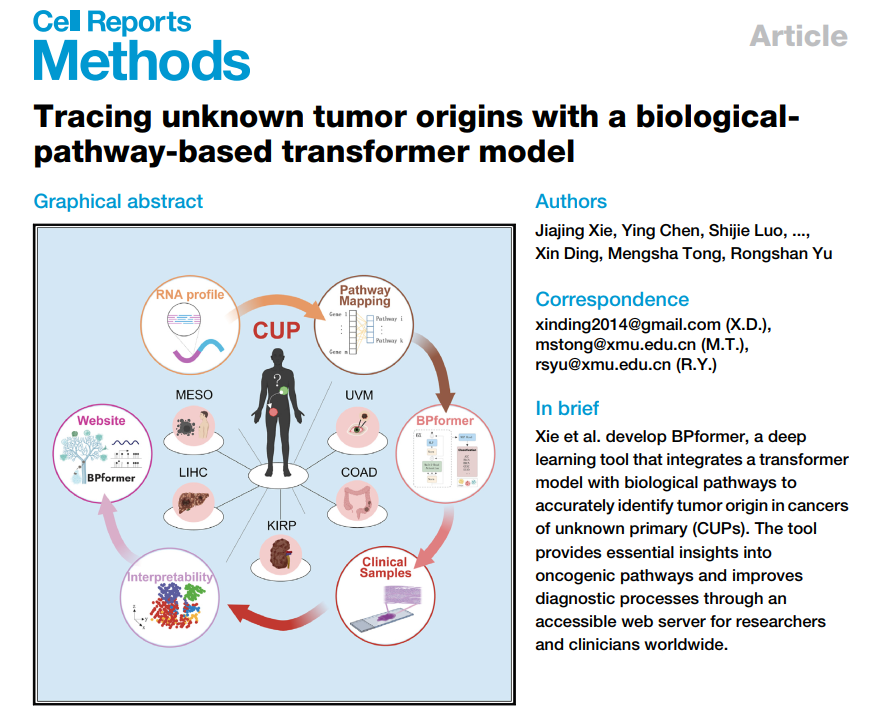 近日,厦门大学信息学院、健康医疗大数据国家研究院俞容山教授课题组在Cell Press旗下期刊Cell Reports Methods上发表了题为 “Tracing unknown tumor origins with a biological-pathway-based transformer model”的最新研究成果。