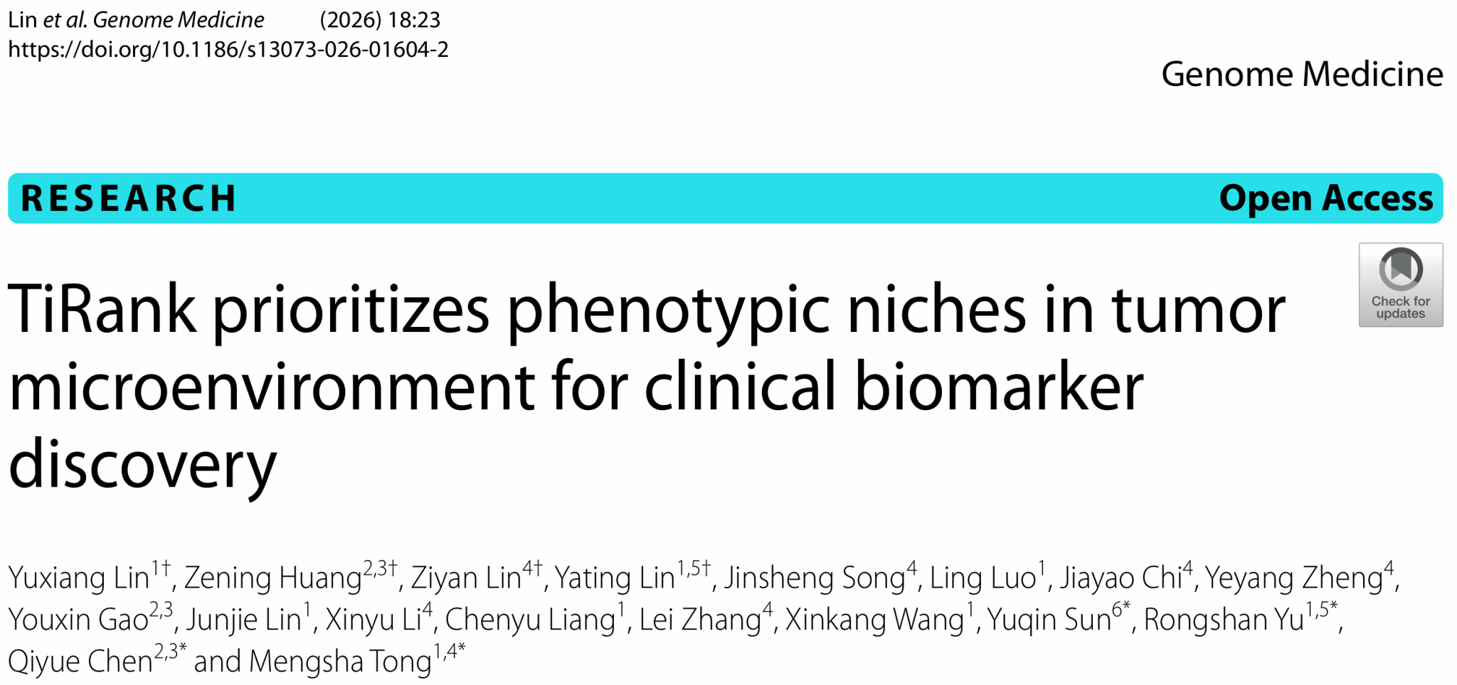 近日,厦门大学信息学院、健康医疗大数据国家研究院俞容山教授课题组在 Genome Medicine 发表研究论文“TiRank prioritizes phenotypic niches in tumor microenvironment for clinical biomarker discovery”,提出跨模态深度学习框架 TiRank,用于在肿瘤微环境中识别与临床结局相关的细胞亚群与空间生态位。